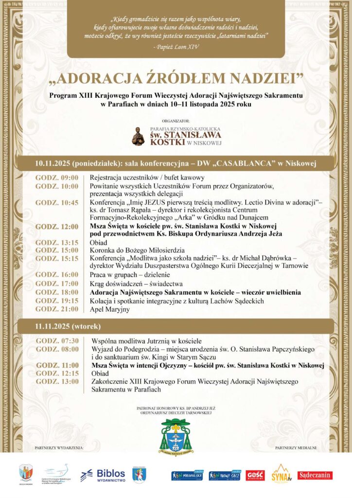 Spotkanie w Niskowej ma być przestrzenią refleksji nad znaczeniem adoracji w życiu Kościoła, okazją do wymiany doświadczeń i pogłębienia duchowej więzi z Jezusem obecnym w Eucharystii. Jak podkreślają organizatorzy, Forum to nie tylko konferencje i modlitwa, ale także czas wspólnoty, świadectw i duchowej odnowy. – Niech te dwa dni staną się dla wszystkich uczestników momentem umocnienia w wierze i odkrycia, że adoracja naprawdę jest źródłem nadziei – zachęcają duszpasterze zaangażowani w przygotowanie wydarzenia.