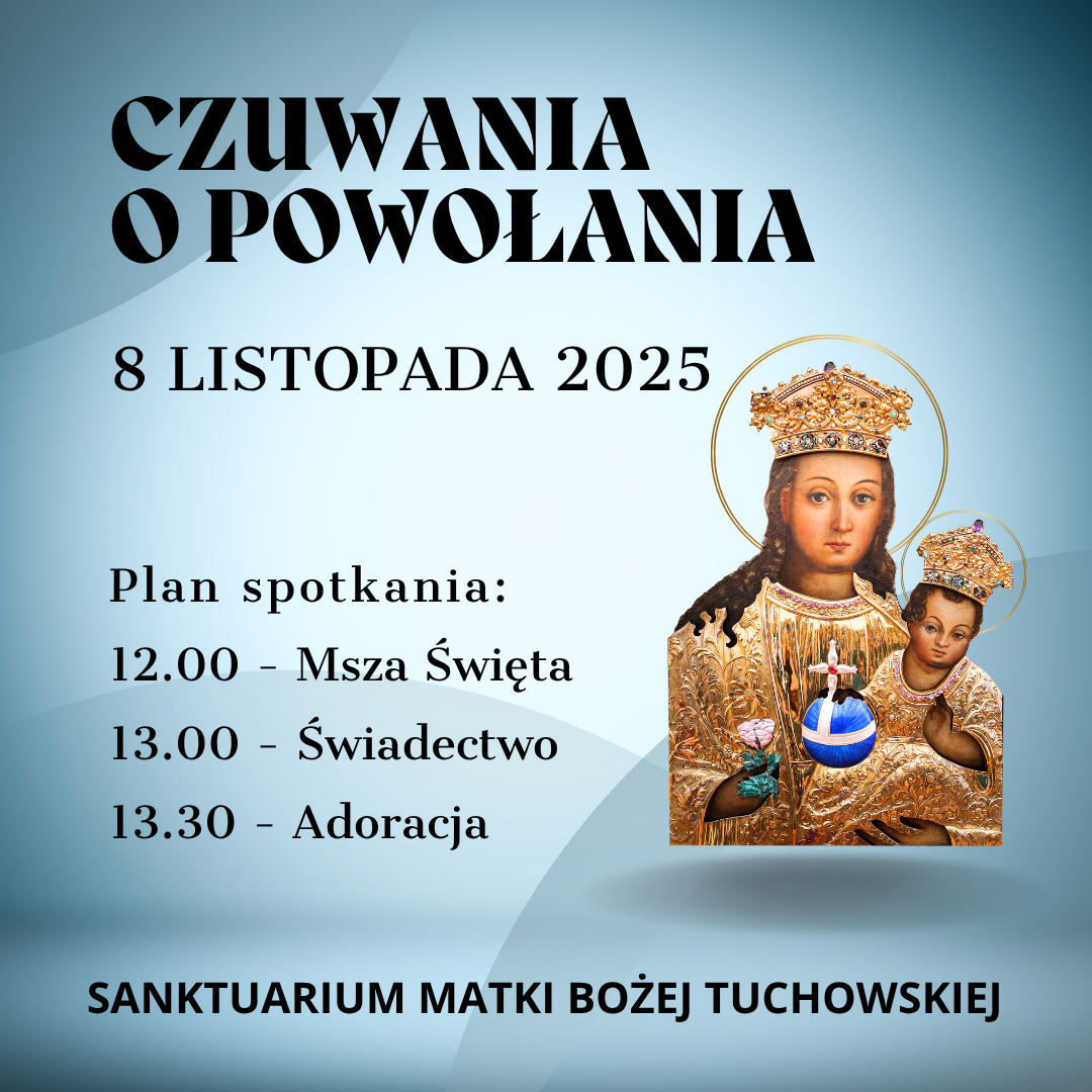 W sobotę 8 LISTOPADA 2025r, w Sanktuarium Matki Bożej Tuchowskiej, będzie kolejne spotkanie z cyklu „Czuwania o Powołania” w czasie którego modlimy się o nowe powołania kapłańskie i zakonne.